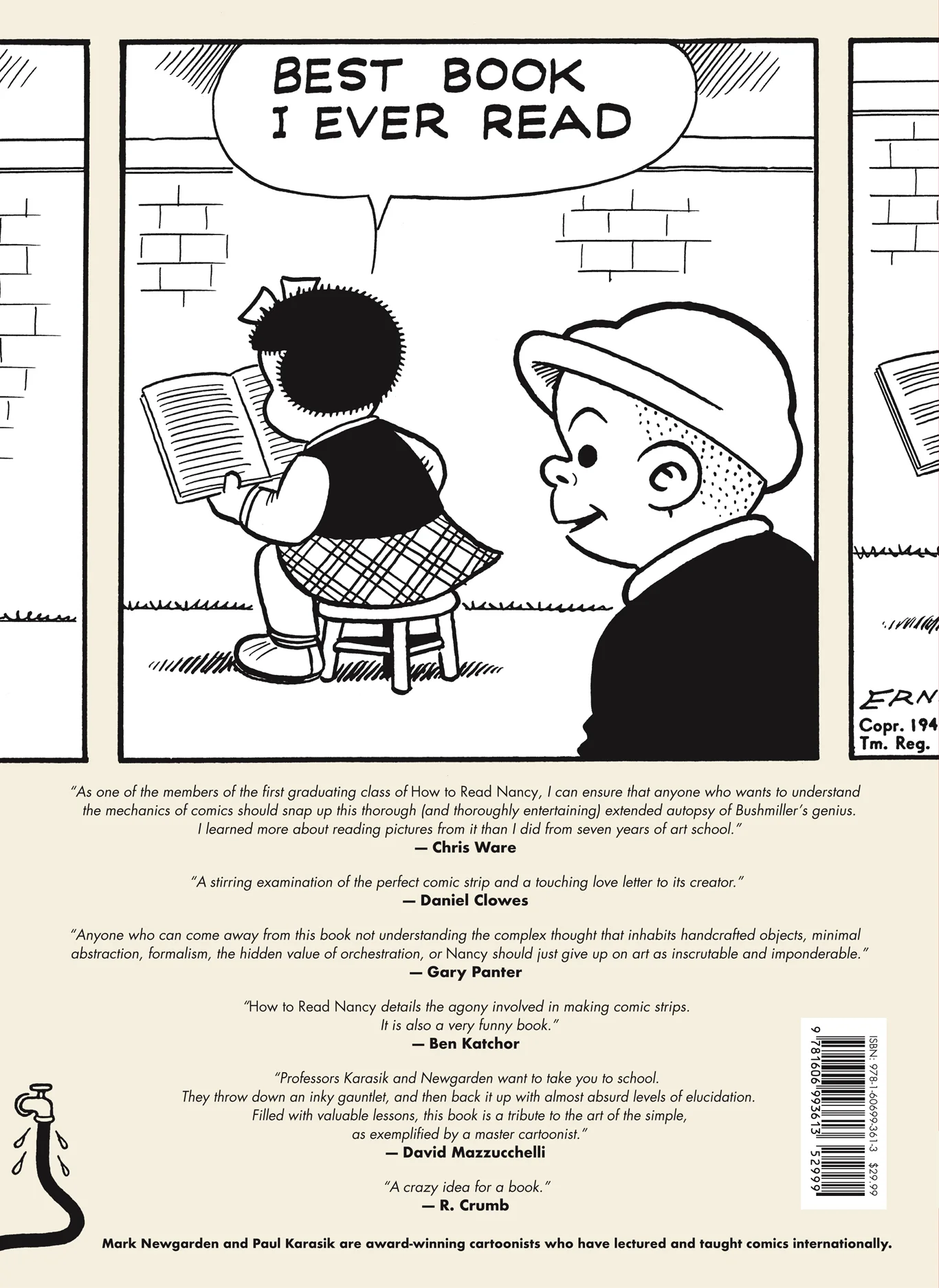“Professors Karasik and Newgarden want to take you to school. They throw down an inky gauntlet, and then back it up with almost absurd levels of elucidation. Filled with valuable lessons, this book is a tribute to the art of the simple, as exemplified by a master cartoonist.”